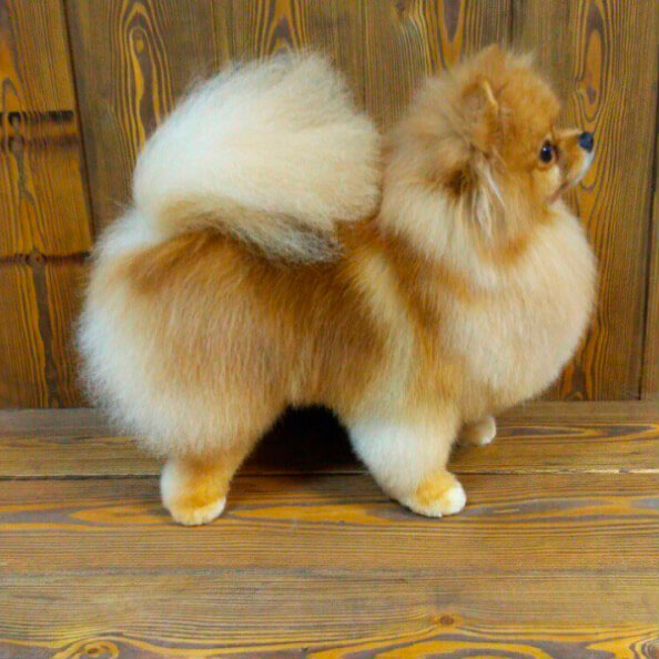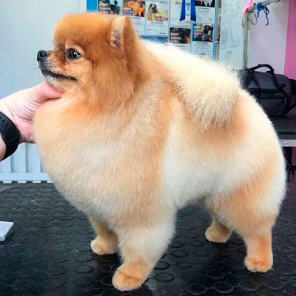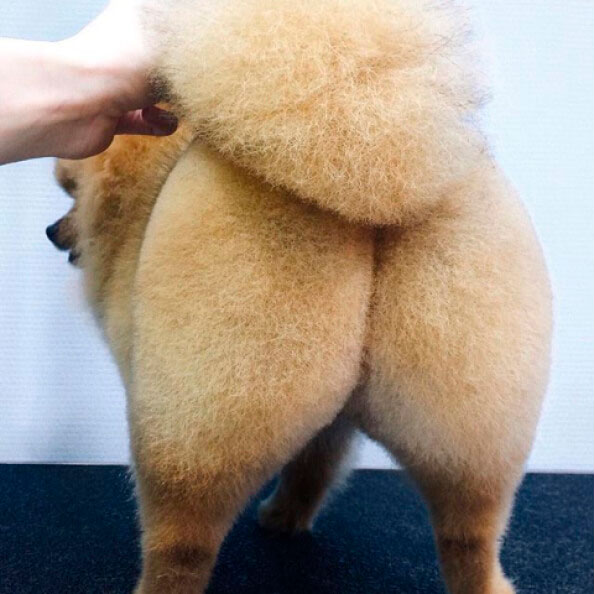 Грумер выстригает шерсть на теле достаточно коротко, но одной длины. Длина шерсти на усмотрение хозяина, но чаще всего просят оставить не менее 5 см. это и не коротко и не сильно длинно. Когда шерсть укорочена, тщательно вымыта, расчесана, она становится мягкой, плюшевой, словно щенячьей.