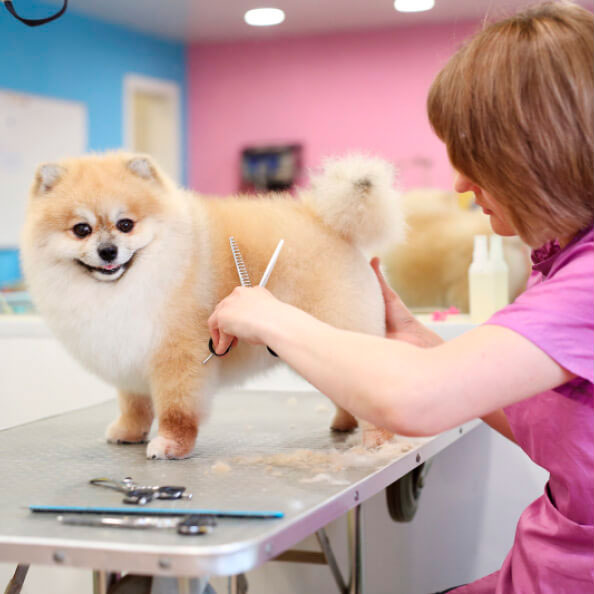 Почему? Питомец в присутствии владельца отвлекается и часто манипулирует вниманием владельца («давя на жалость»). Это усложняет работу грумера и повышает риск травматизации питомца. Так же часто отвлекает и других питомцев за соседними столами.
